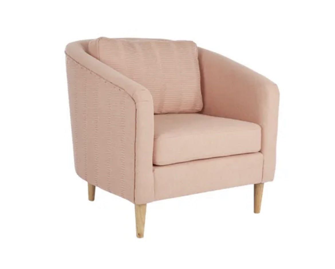 Flavia Arm Chair Peach colour with intricate detail.