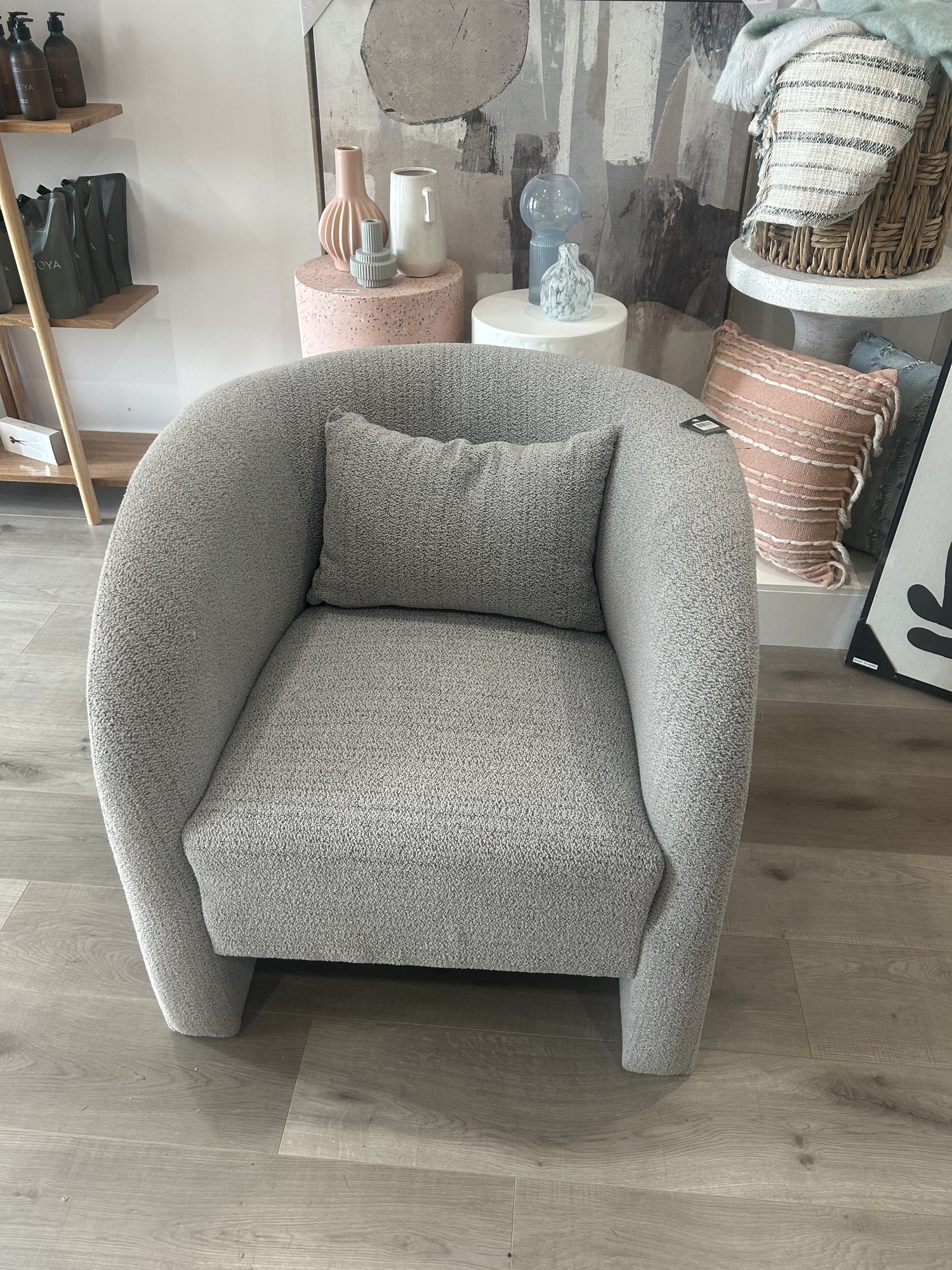 A boucle chair is a stylish and comfortable piece of furntiture that features a unique, textured fabric known as boucle. The chair itself typically has a modern and minimalist design, with clean lines and a sturdy frame. The boucle fabric adds a layer of coziness making it a choice for contemporary and classic interiors.