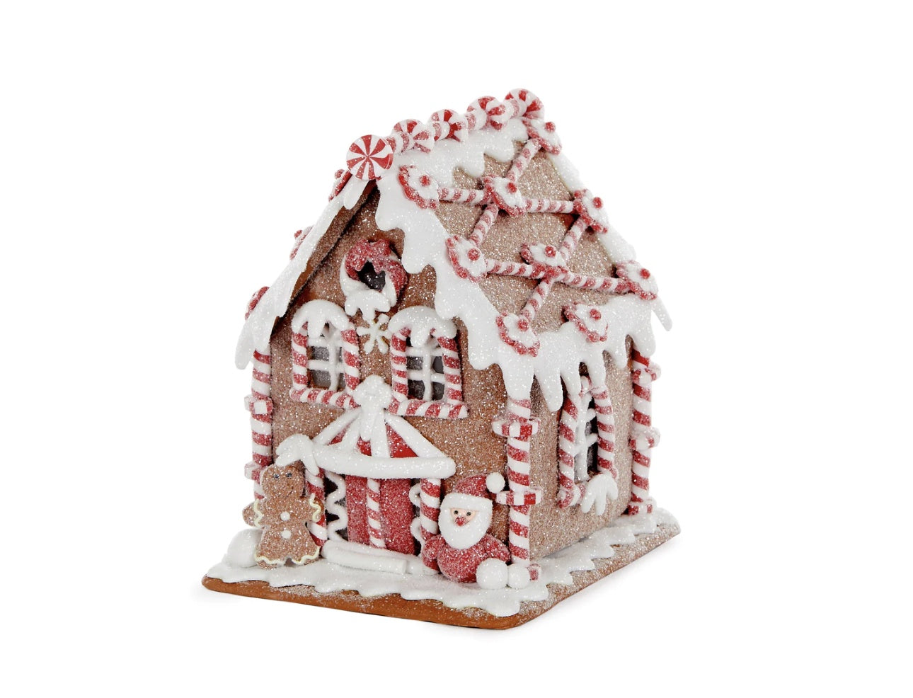 LED gingerbread house with Santa
